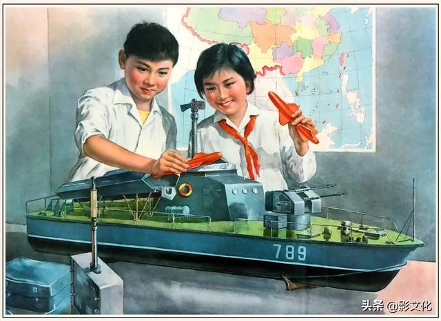 画面是两名中学生正在观看军舰的模型。从小热爱科学,为祖国的科学发展贡献自己的力量。