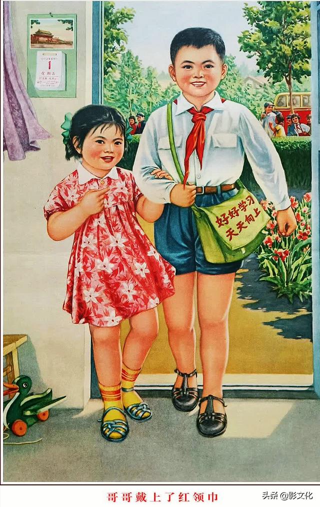 1973年河北人民出版社出版,柳忠福创作。哥哥带上了红领巾,可爱的妹妹也感到光荣。
