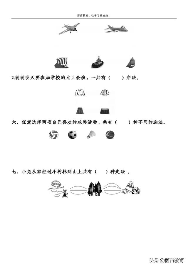 1.一架玩具飞机和一艘玩具船作为一套组合,请你连线表示出所有的组合.