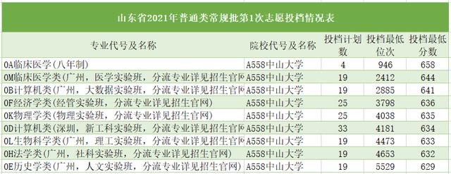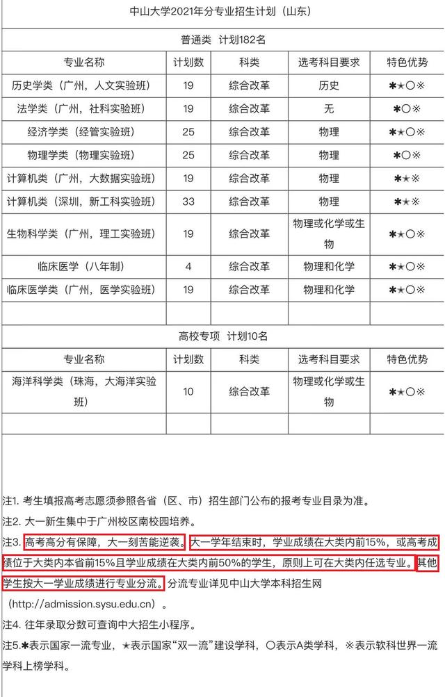 中山大学2021年山东省招生计划说明(来源于中山大学本科招生网)