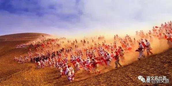 文中运用了大量的短句,营造出一种激越的气氛。铿锵的短句。课文多用短句来表现内容。如“一群茂腾腾的后生”,简洁地展现了年轻的生命的热烈奔放;“忘情了,没命了”,强有力地展现了生命沸腾、力量奔涌而出、无法遏制的场景;其他如“落日照大旗”“愈捶愈烈”等句子,无不铿锵激昂。