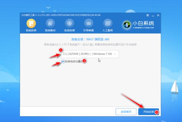 6、选择将系统安装到系统盘c盘,点击开始安装。