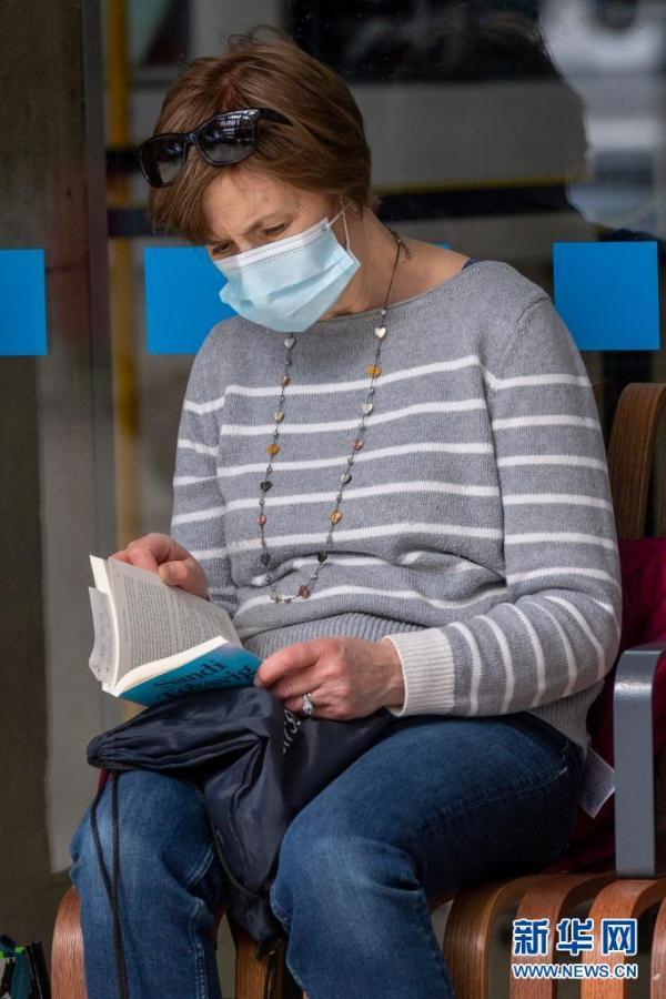 4月17日,一名女子在英国伦敦的一处火车站内读书。
