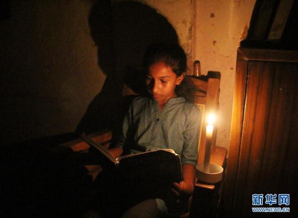 这是2020年8月17日,在斯里兰卡科伦坡,一名学生在停电后依靠烛光继续读书。