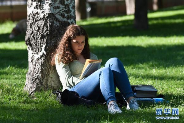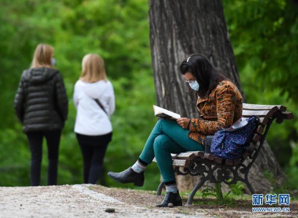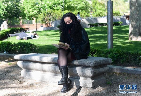 4月16日,一名女子在西班牙马德里一个公园内读书。