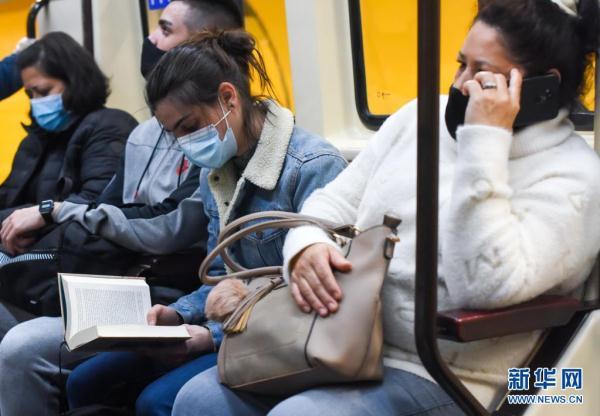 4月14日,一名女子在西班牙马德里的地铁内读书。