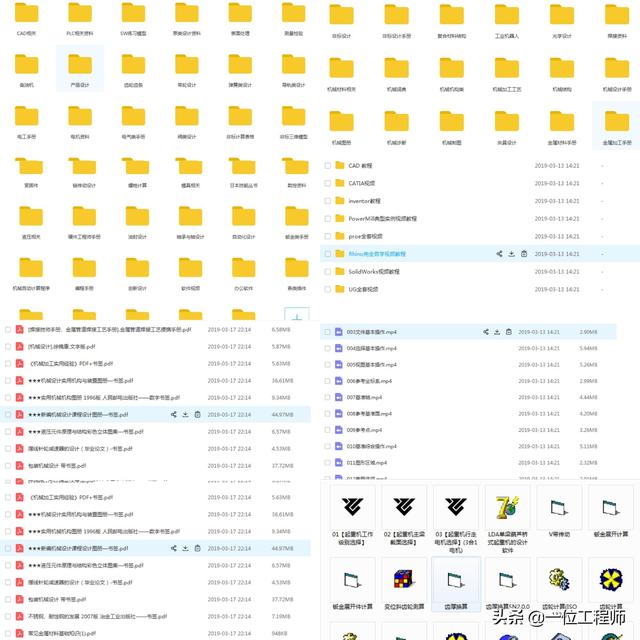 专栏中的这1000G资料涉及的范围很广,具体来说包括模具、机械加工、材料类、电气行业、各种零件模型和非标等等领域,具体内容表现形式:文档类(各类机械设计手册、液压类手册、自动化类手册等等,所有历史文章的PPT源文件等)、常用的设计工具(一些自动计算表格)以及视频教程类,我相信专栏的这些资料对于提升你的能力一定会有很大的帮助。同时在你工作中遇到相关问题的时候,这些资料也能提供很好的指导作用。购买专栏后即将1000G机械资料发送给你,获取专栏资料也可以私信咨询我。