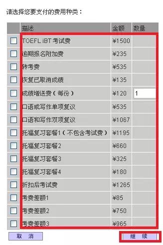 选择付费项目和数量,在这之前最好先看看自己网银余额是否充足。