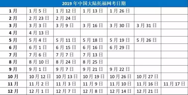 2019年托福考试时间