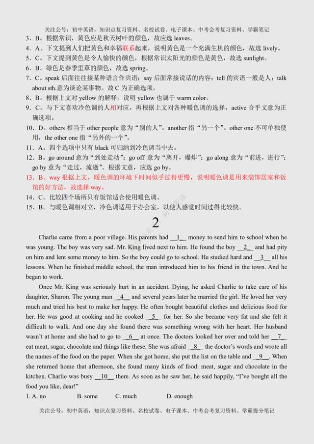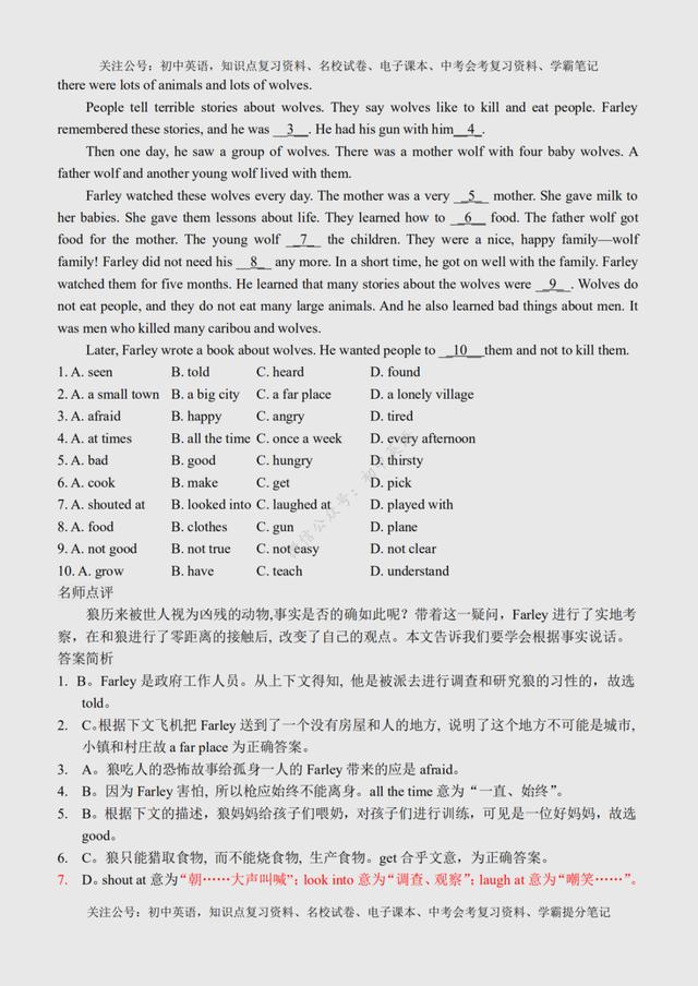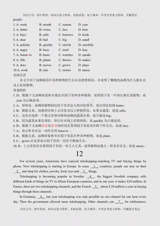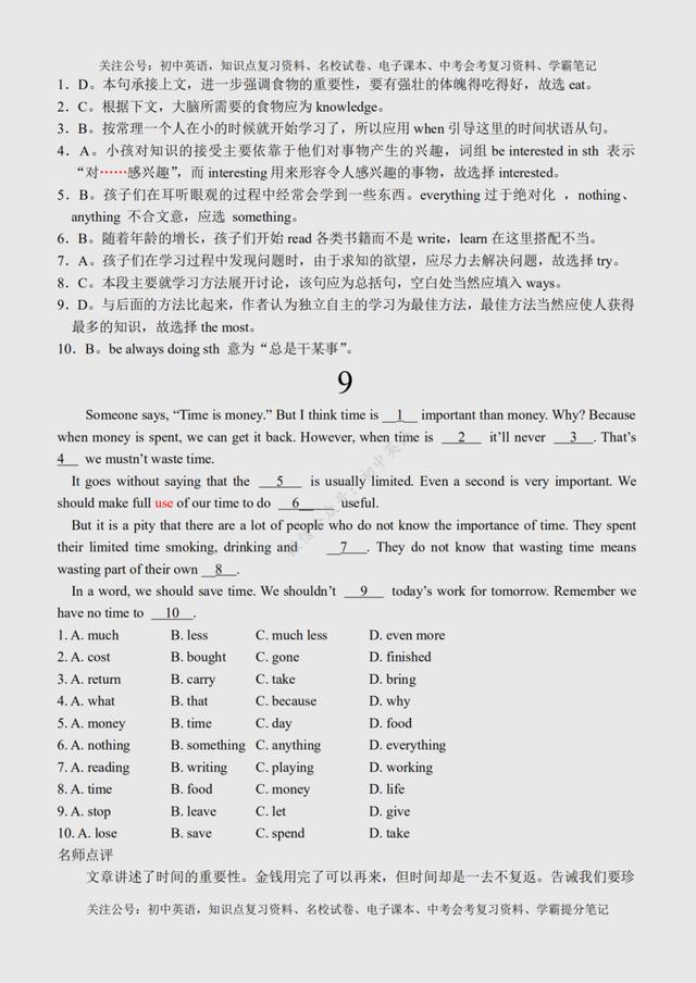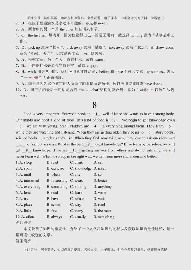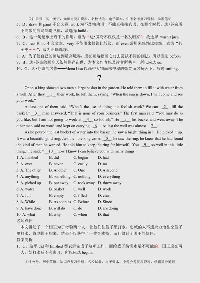 初二英语完形填空(初二英语完形填空100篇) 初中英语:完形填空专练100篇超全汇总,附参考答案+名师点评 文末有word版完整高清资料获取的方法! 由于篇幅原因,今天的内容就到这里了,如需更多完整word版学习资料,学习方法,都可以关注通过下方方式找我免费领取! 打印领取步骤: 1、点击头像进入主页然后再关注,2、接着点击“私信”发送【01】即可