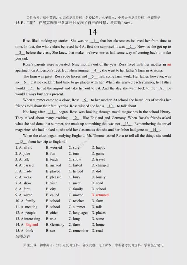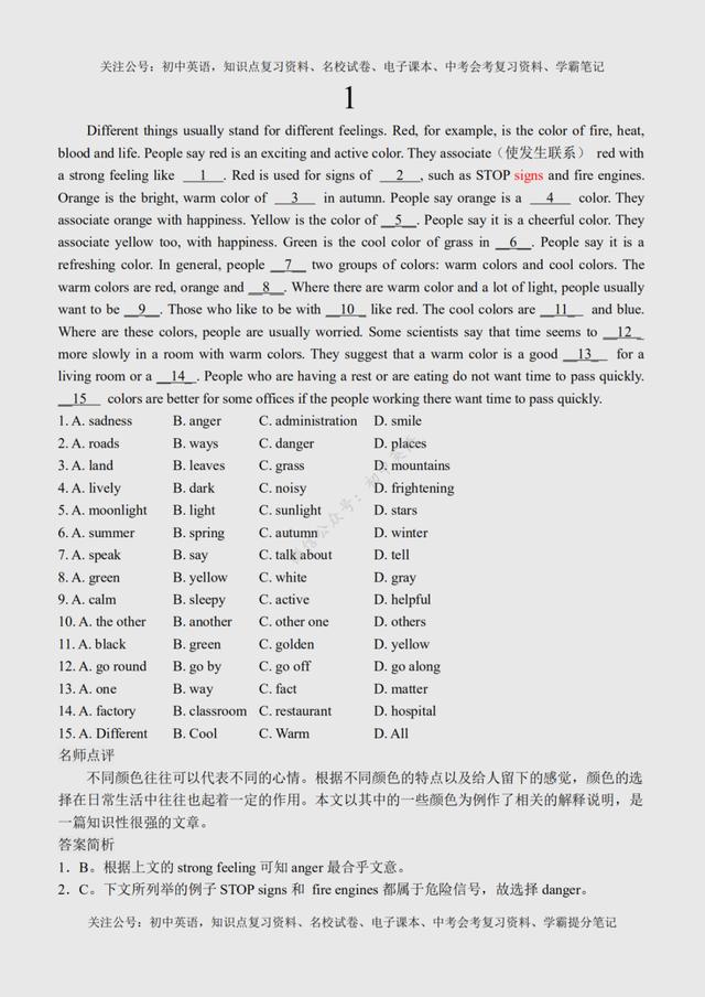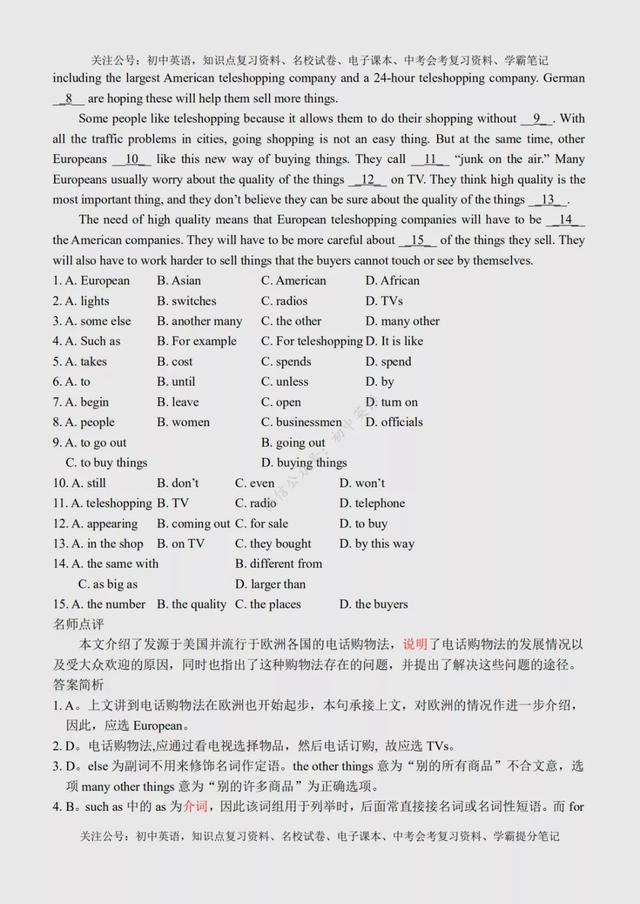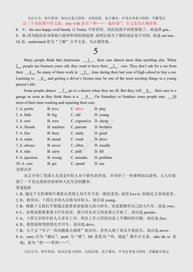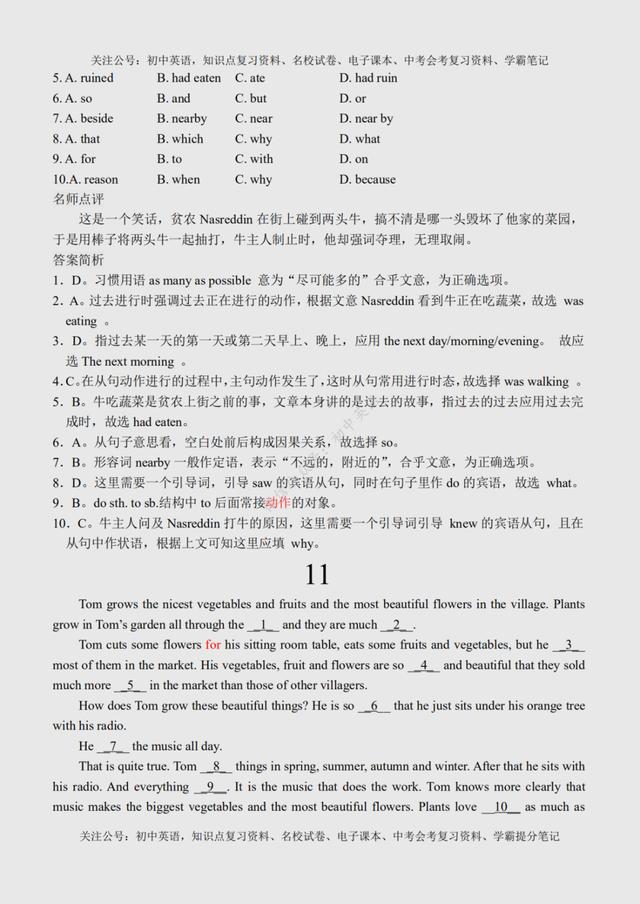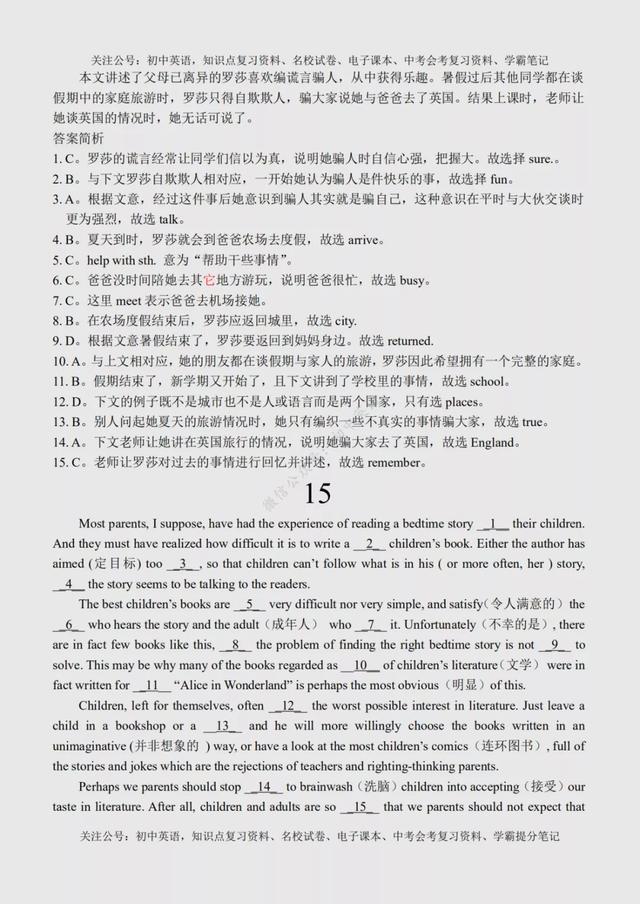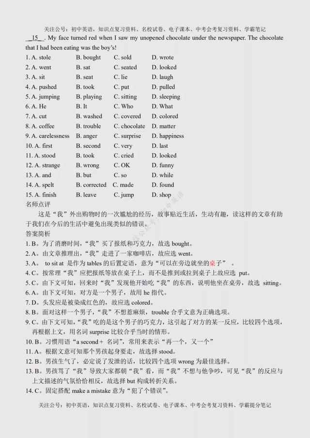 初二英语完形填空(初二英语完形填空100篇) 初中英语:完形填空专练100篇超全汇总,附参考答案+名师点评 文末有word版完整高清资料获取的方法! 由于篇幅原因,今天的内容就到这里了,如需更多完整word版学习资料,学习方法,都可以关注通过下方方式找我免费领取! 打印领取步骤: 1、点击头像进入主页然后再关注,2、接着点击“私信”发送【01】即可