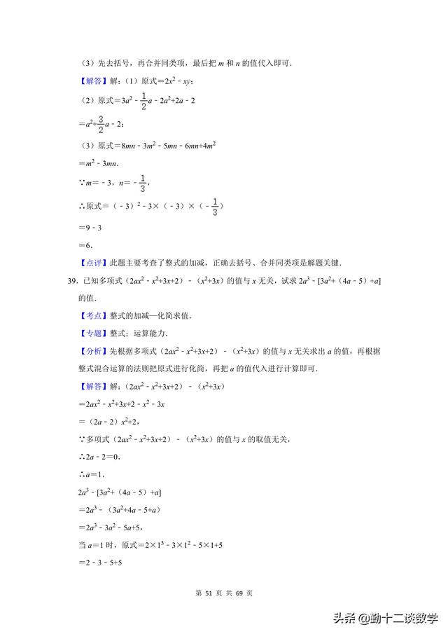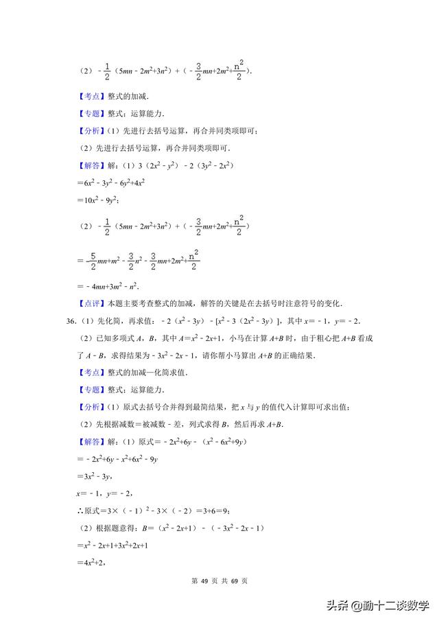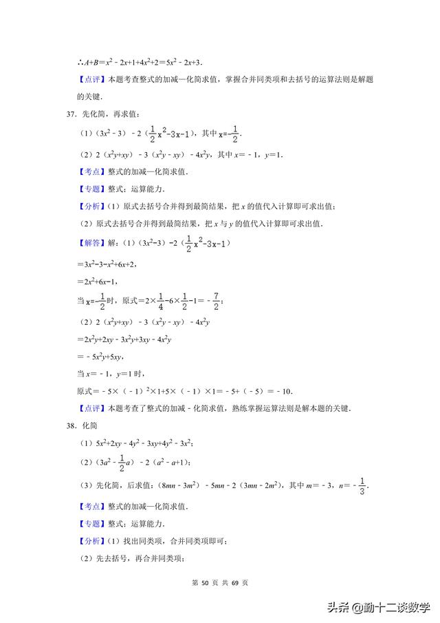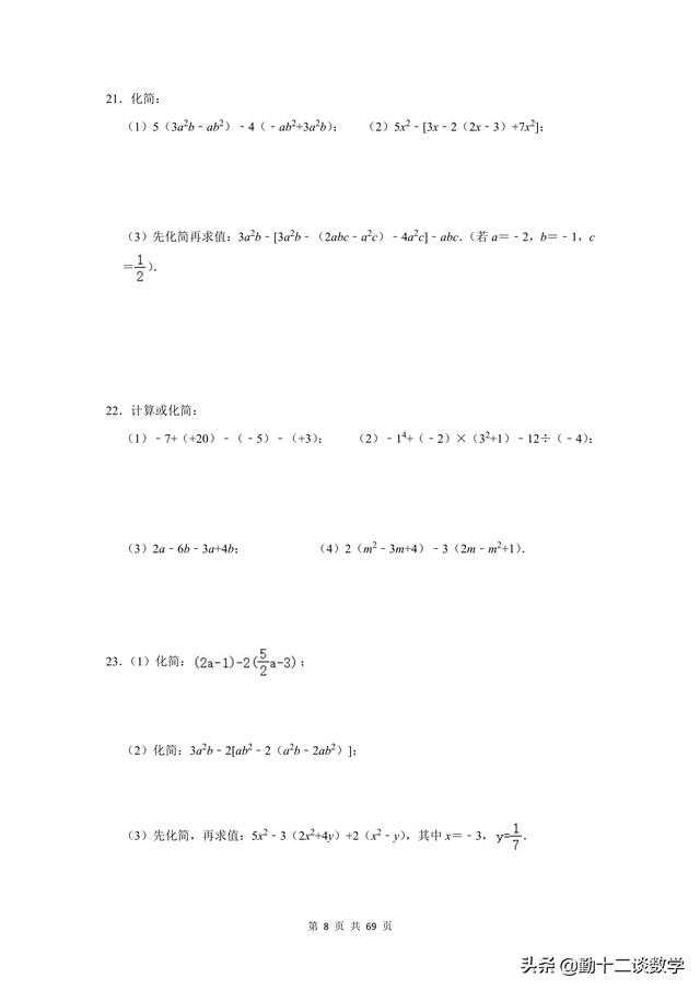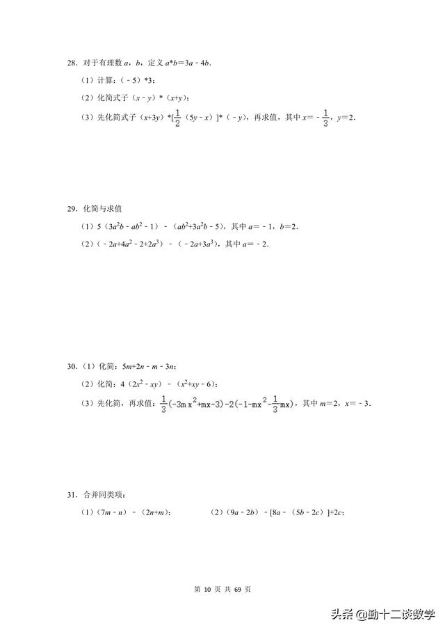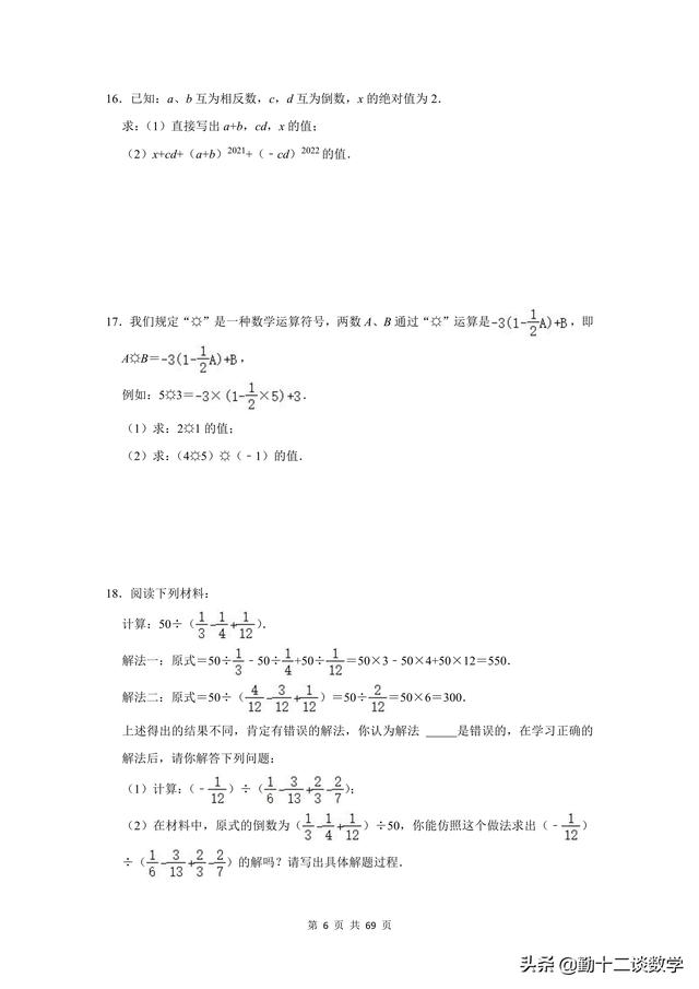 复习不完全是为了应考,是立足于提高同学思维能力、熟练地灵活综合运用知识的能力,是同学巩固深化知识、培养能力的不可忽视的重要途径。前面更新的以提优居多,本篇文章以基础为主。七年级上学期,涉及到的计算问题较多,比如有理数的运算、代数式的运算(整式加减法)、一元一次方程的运算。这三块知识点,每个知识点分别有20道计算题(包含阅读理解型问题计算),一共精选60道题目,题目大多来自于本学期月考试题,本学期期中考试试题,以及上学期期末考试试题。适用于基础不牢固的同学,考试前可以将计算过一遍。题目都含有完整的解析过程,不要担心只有一个答案看不懂。