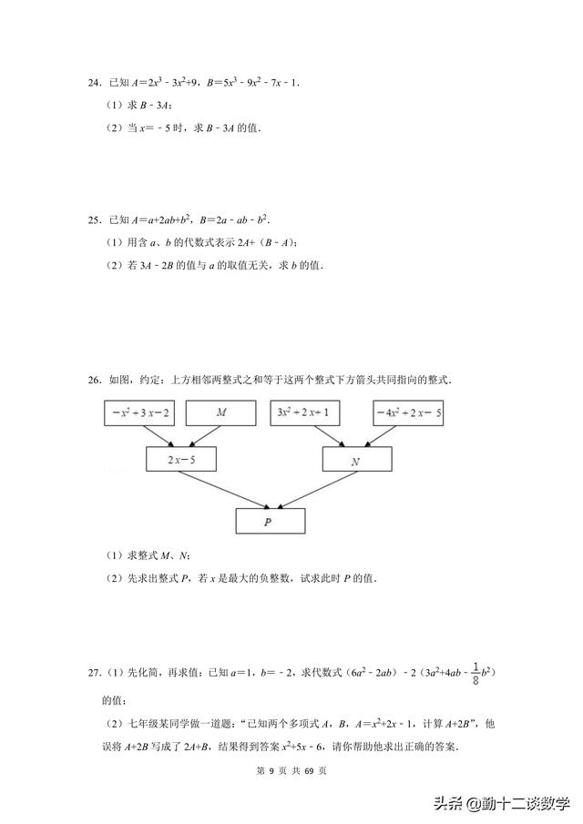 7年级数学题(七年级数学题100道)