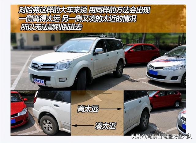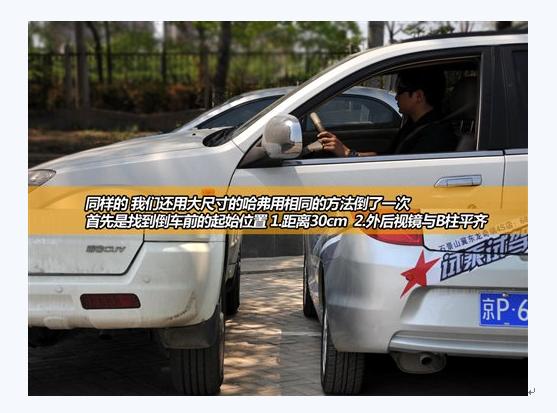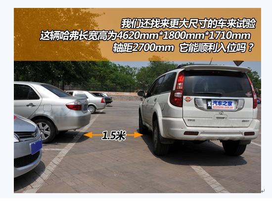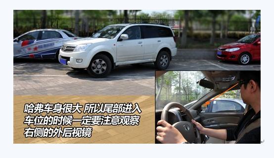 试验结果是,哈弗这种尺寸的车按照刚才的方法无法顺利倒进去。倒车前的起始位置对它来说不够合适,进入车位前它的车身已经明显偏离了正确的轨道。