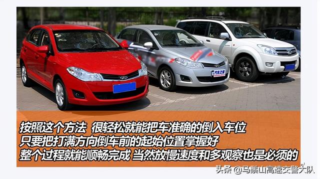 这时你就找到了最佳的起始位置,接下来的工作就是打满方向,然后倒车入位!需要注意的是,倒车的速度一定要慢,因为倒车时难免有盲区,如果速度不快的话,有突发状况也能从容应对。