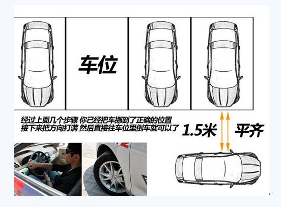 首先当然是找好你想要停的车位,看住了别被人抢走,然后开始下面的工作:继续往前开,经过一番调整,把你的车和车位间的横向距离保持在1.5米左右。