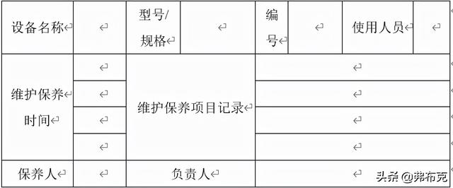 设备的各级维护保养均应当填写相应的维护保养记录,记录样单如下。