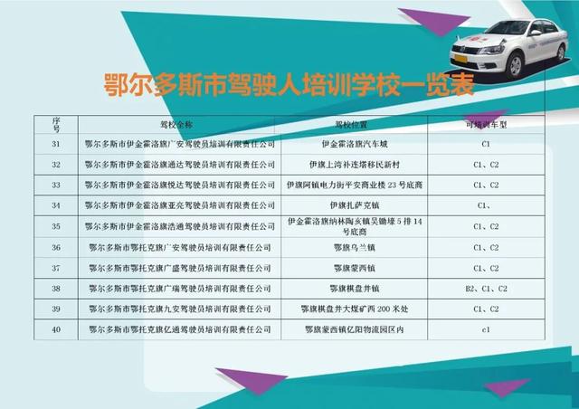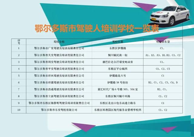 鄂尔多斯市驾驶人培训学校一览表