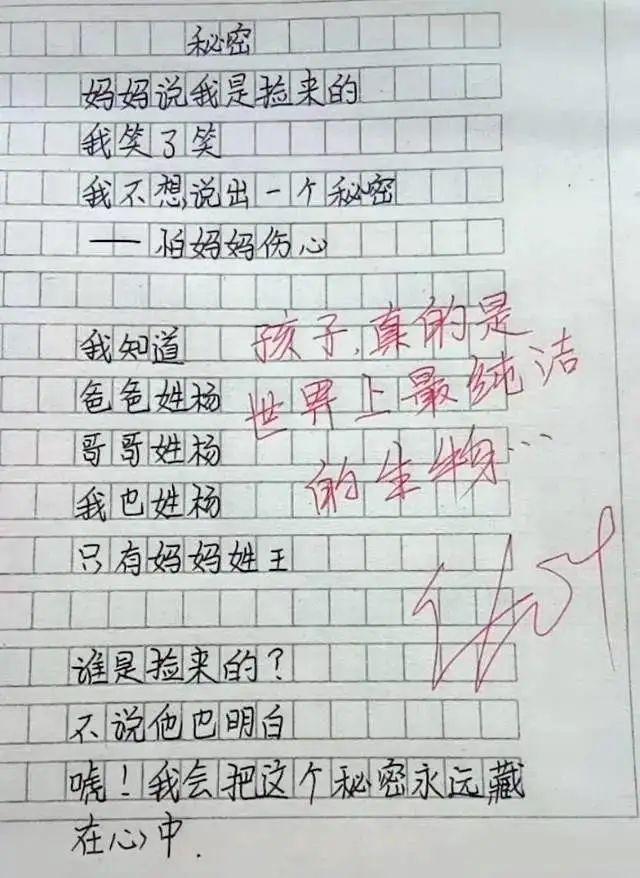 这首诗,让我们体会到了一份温暖的、藏在“秘密”里的爱。