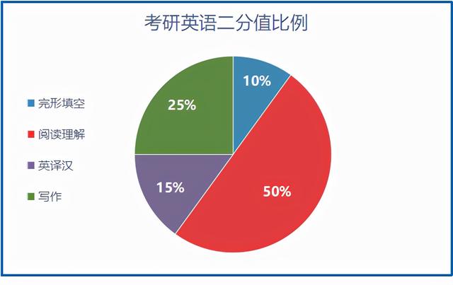 想必研究过真题题型分布的同学们都知道,英语(二)试卷分为四大模块:完形填空(10分)、阅读理解(50分)、英译汉(15分)、写作(25分)。