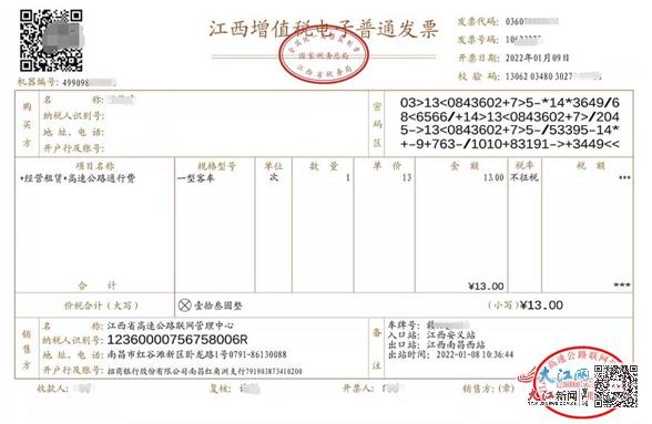 同时,记者了解到,依据财政、税务有关法律、法规及相关政策,结合《收费公路管理条例》有关规定,全省高速公路政府还贷公路的MTC(公路半自动车道收费系统)出口车道开具“江西省收费公路车辆通行费票据(电子)”,全省高速公路经营性公路的MTC出口车道开具不征税的“江西增值税电子普通发票”,为MTC用户提供报销用途的“一张票”。