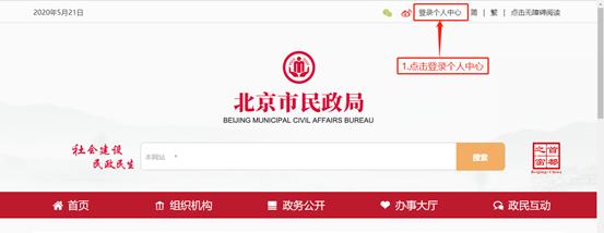 第一步:访问北京市民政局官方网站:/,点击“登录个人中心”,如下图: