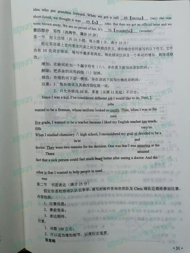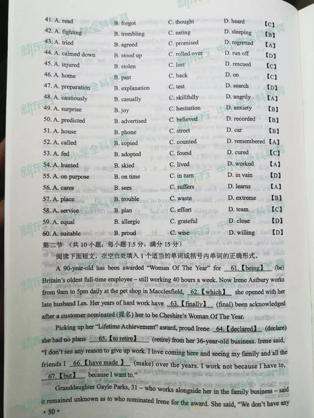 英语真题及答案