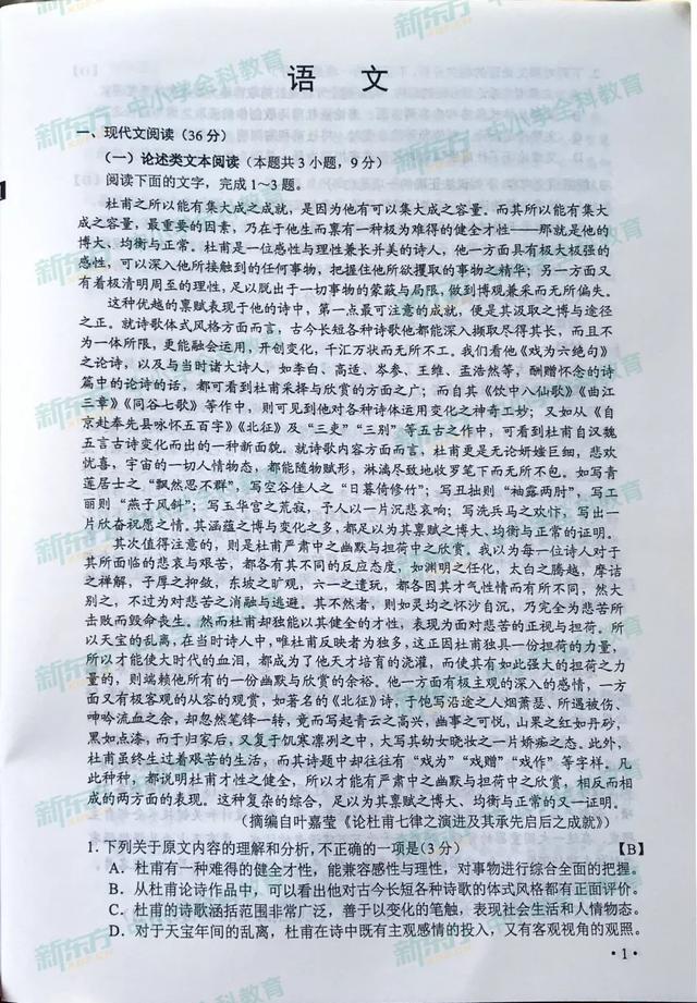 语文真题及答案