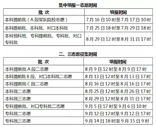 河北今年本科一批、二批录取批次合并,普通文史、理工类录取批次分为本科提前批、本科批、专科提前批、专科批等四个批次,其中普通本科批实行平行志愿,设一志愿、二志愿、三志愿,每个志愿填报10所院校,每所院校填报6个专业志愿。7月25日至29日填报本科提前批、本科批及对口本科批的第一志愿。9月中旬,普通高校招生录取全部结束。