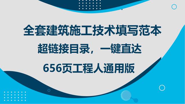 一共656页,工程人通用版建筑施工技术档案资料全套填写范本,开篇有超链接目录,不用再一页一页翻着找耽误时间,一键直达,点一下就能直接进到相应的资料页面,省事儿多了。