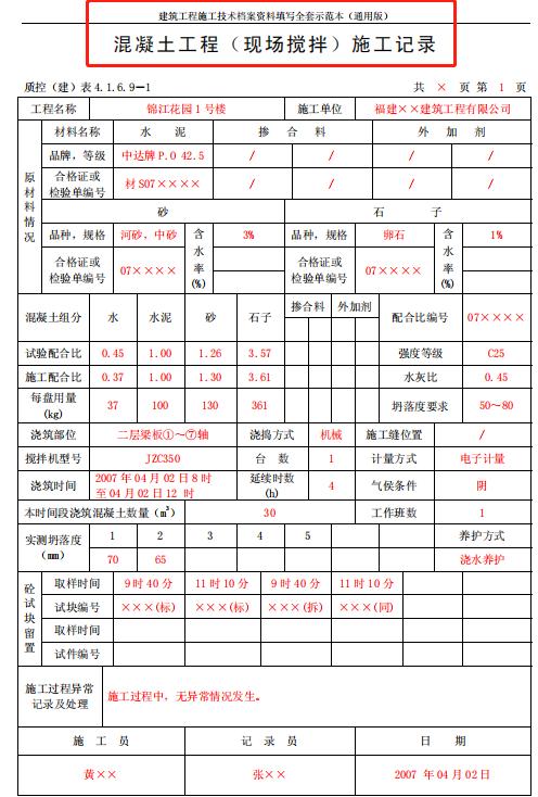 混凝土施工记录