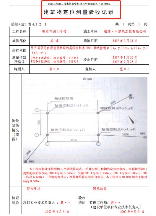 建筑物定位测量验收记录