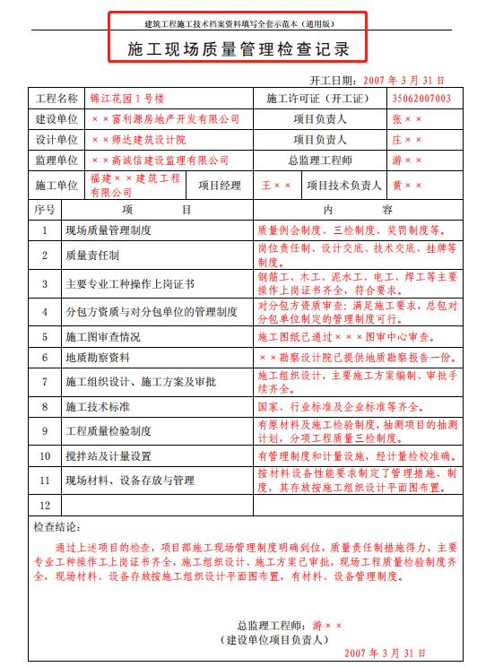 施工现场质量管理检查记录