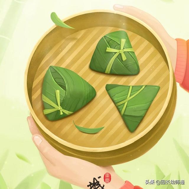 3. (中班)“棕子香,香厨房。艾叶香,香满堂。桃枝插在大门上,出门一望麦儿黄。这儿端阳,那儿端阳,处处都端阳。