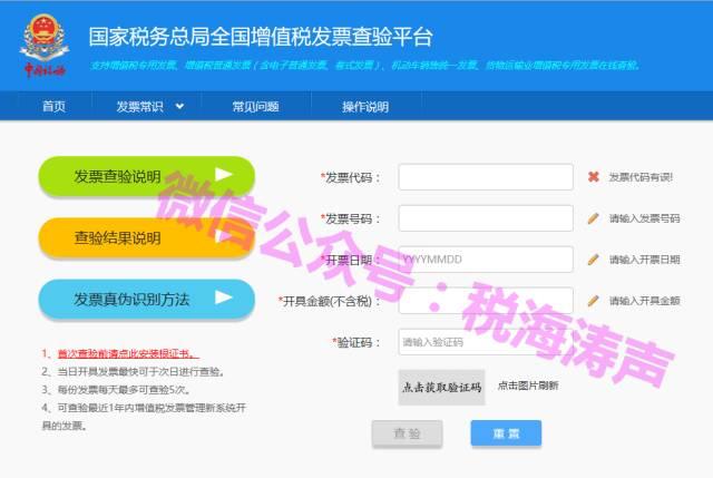 (5)每天每张发票可在线查询次数为5次,超过次数后请于次日再进行查验操作。