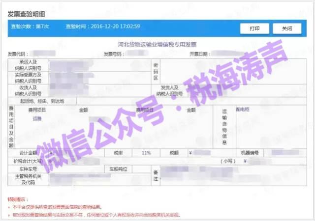 (6)本平台仅提供所查询发票票面信息的查验结果。如对查验结果有疑议,请持发票原件至当地税务机关进行鉴定。