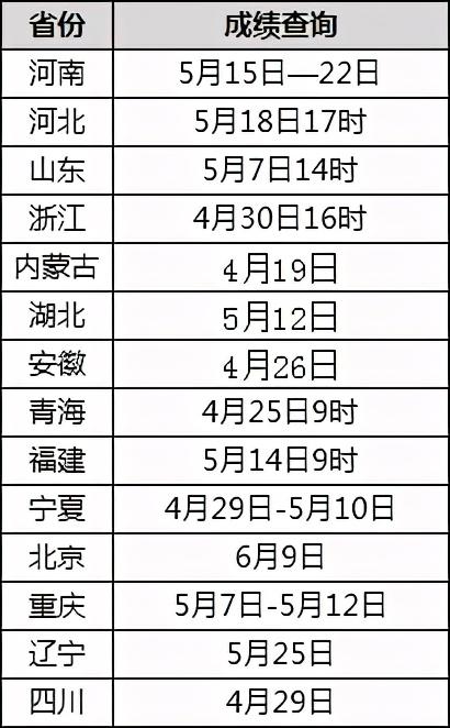 自考网成绩查询(浙江省自考网成绩查询) 截止目前,全国共13省已发布4月自考成绩查询时间,小启给大家做了汇总,往下看 01已公布成绩的省份 02其余省份预计成绩查询时间 不知道公布成绩的有没有你们省份呢[无辜笑]还没公布成绩省份的考试们也不要急,等下成绩公布小启也会在这里第一时间公布的! 更多相关资讯大家也可以微信搜索:郑州启航学校,关注我们的官方公众号,了解更多自考相关信息!