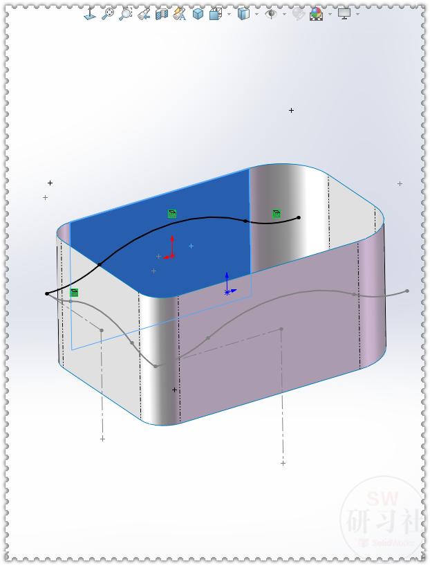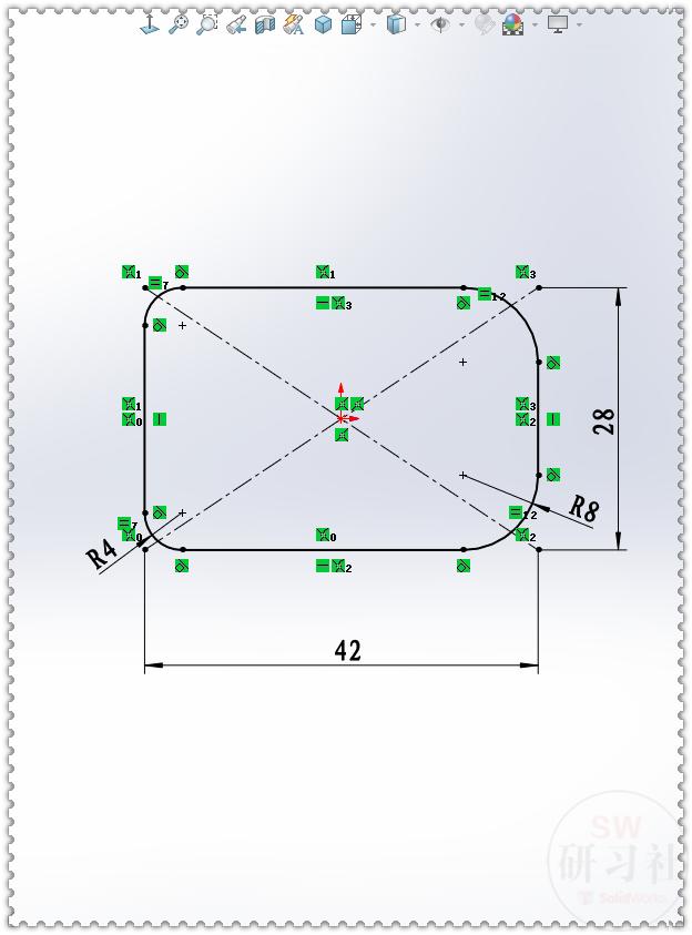 1.【上视基准面】画一个中心矩形,然后圆角。