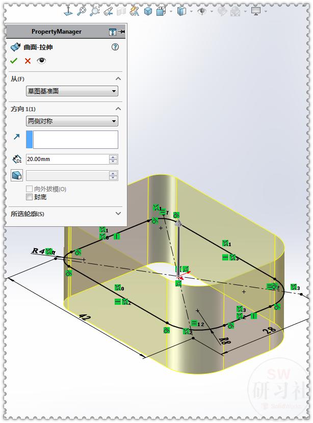 2.【拉伸曲面】两侧对称:20 。