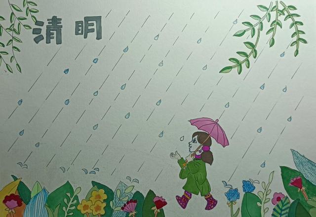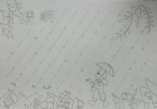 四、勾出标题,画出细雨和雨滴做写字的斜格子。