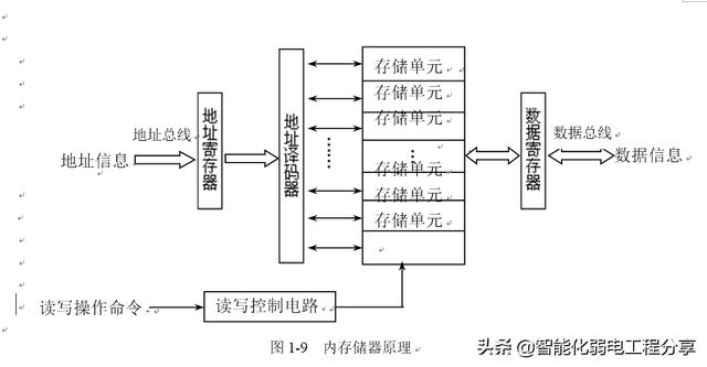 可见,不论是读还是写,都必须先给出存储单元的地址。来自地址总线的存储器地址由地址译码器译码(转换)后,找到相应的存储单元,由读/写控制电路根据相应的读、写命令来确定对存储器的访问方式,完成读写操作。数据总线则用于传送写入内存或从内存取出的信息。