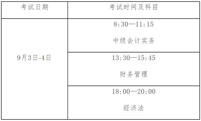 中级会计资格考试于2022年9月3日—4日举行,共2个批次,具体安排如下: