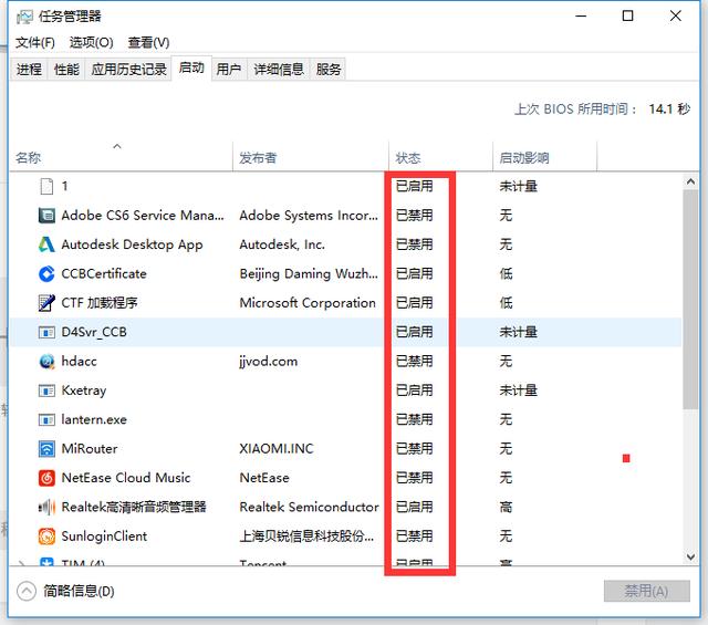 接下来同样根据您的需求来禁用您想要开机不启动的软件即可。
