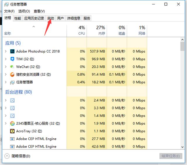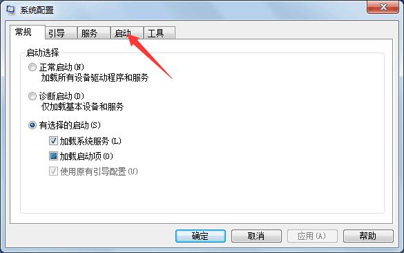 在弹出的界面上方选择启动选项卡