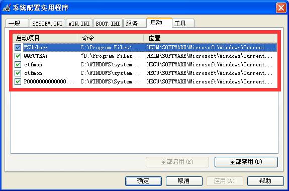 列表中就是您电脑内设置为开机启动的软件列表