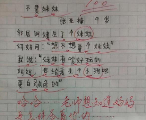 小学生作文《不要妹妹》,高情商吐露真实想法,妈妈看后不想再生二胎