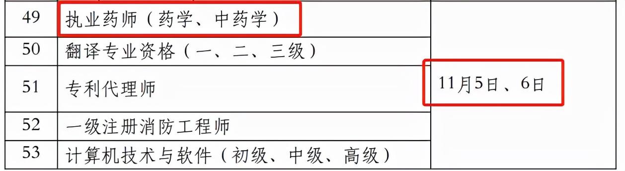 在公布的2022年度专业技术人员职业资格考试工作计划中,可以看到执业药师考试时间为11月5日、6日。