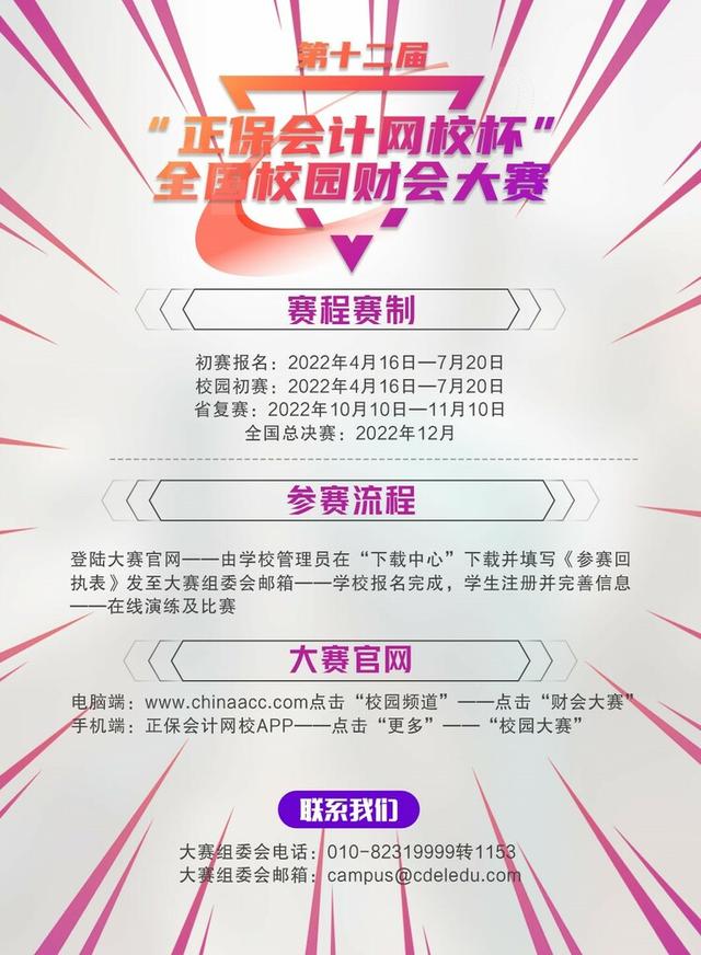 此外,第十二届大赛更名为“正保会计网校杯”全国校园财会大赛,现已开通初赛报名及比赛专区。各院校可在大赛官网报名参赛!