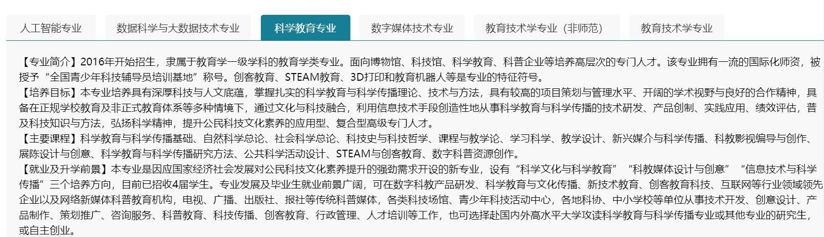 1.专业定义:培养具有良好思想道德品质、扎实的自然科学知识和较强的科学教育能力,能在中小学从事“科学”或“综合实践活动”课程教学与研究工作,以及在教育科研部门、公共事业单位从事基础科学教学研究和科学普及教育与管理。