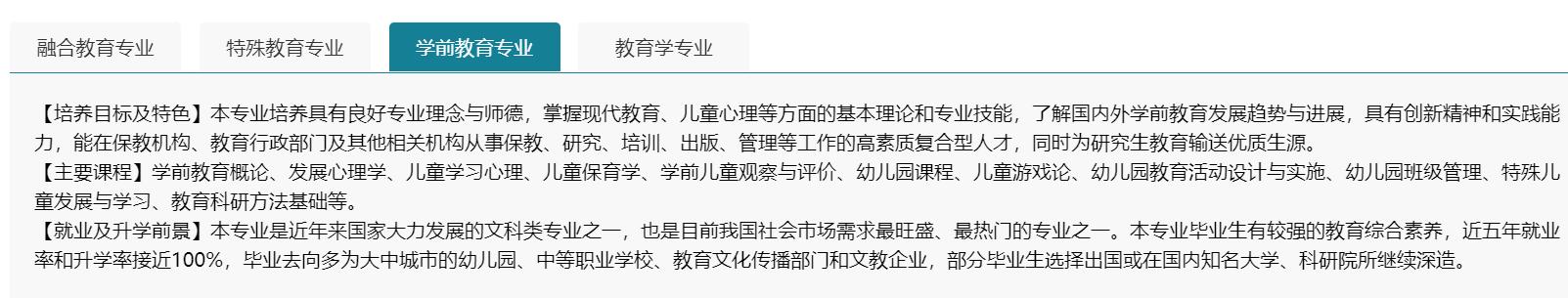 4.主要课程:学前教育课程论、儿童哲学、幼儿园教学艺术、学前比较教育、幼教管理、教育测量与评价、幼儿发展评价、发展心理学。